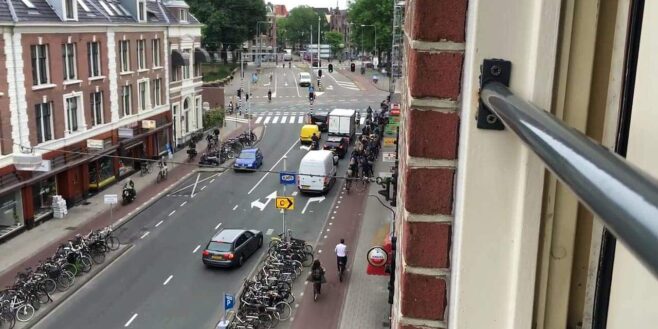Le rush hour du matin à Amsterdam montre à quel point le nombre de cyclistes est important. On peut le voir avec ces images, d’une multitude de vélo qui doivent attendre de passer.
