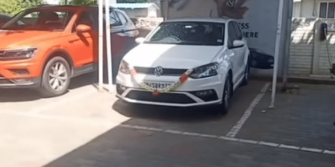 Ce conducteur est venu récupérer sa voiture chez son concessionnaire. Très heureux d’aller conduire sa nouvelle Volskwagen Polo, il décide même d’immortaliser le moment en se faisant enregistrer en vidéo.