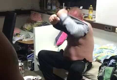 Le ptit dej’ en Russie, c’est ligne de vodka… Le mec n’arrive pas à enfiler son pull… Peut être parce que c’est son pantalon. !