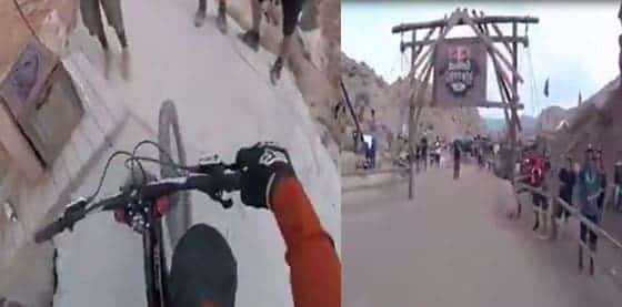 Le participant de ce concours de vélo a amené une caméra embarquée qui nous montre le dangereux parcours de chaque vélo. C’est un terrain avec des pentes très accidentées.