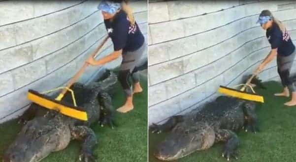 Certains métiers peuvent nous surprendre, comme celui de cette femme qui nettoie un alligator avec un balai.