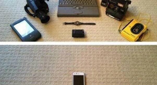 L’évolution de la technologie est frappante. Tous les gadgets 90 réunis dans un seul appareil en 2018.