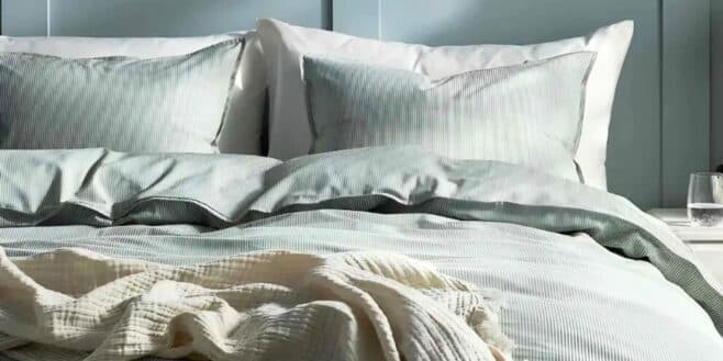 Vendue à prix très attractif, cette parure donnera à votre chambre une belle touche sophistiquée. Ikea propose de la retrouver au prix de 17,99 € pour la version 150×200 cm. Et à 29,99 € pour la version 240×220 cm.