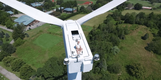 Joseph Byron est monté sur la turbine d’une éolienne, à 53 m de hauteur pour profiter de quelques minutes de répit et se détendre pour profiter de la vue, mais il a très vite été perturbé par un drone avec une caméra digitale. L’appareil appartenait à un touriste californien.
