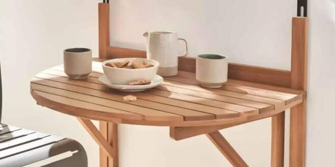 Maisons du Monde continue de mettre tout le monde d’accord. La firme vient de mettre en vente une table d’appoint qui transforme les petits balcons en espaces cosy et élégants. C’est un modèle en bois, facile à installer et parfait pour les petits espaces.