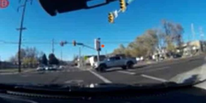 En voulant fuir la police, un voleur au volant d’une voiture grille un feu rouge à un carrefour, causant ainsi un accident.