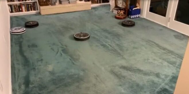 L’équipe de nettoyage dans cette maison est composée de plusieurs robots aspirateurs qui font une démonstration tout en musique dans cette vidéo.