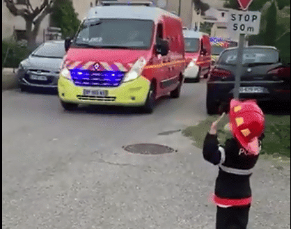 Le métier de pompiers alimente souvent le rêve des enfants, surtout des garçons. Avec leur tenue et leur camion, beaucoup rêvent de les voir réellement. Ce papa a fait la chose que désirait son fils plus que tout au monde et la scène est adorable. Il a décidé d’appeler la caserne de Pegomas et leur a demandé de passer dans leur rue. Les pompiers très généreux ont accepté et ont même gâté ce petit. Un camion de pompier passe et puis un autre et d’autres, en allumant la sirène, sans oublier de le saluer au passage. Les gestes de l’enfant montrent à quel point il est heureux.