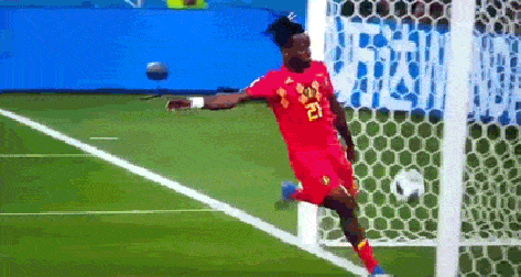 Alors que Adnan Januzaj vient de marquer, Michy Batshuayi reprend le ballon pour le dégager une nouvelle fois dans les cages. Le problème est que l’attaquant beau, qui lui revient en pleine poire.