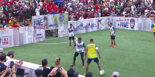 Dans un match de five, Neymar Jr s’est opposé à un joueur de futsal qui a réussi à lui piquer le ballon malgré ses dribbles. Le Brésilien s’est pas laissé démonté et il l’a envoyé dans le décor par un gros coup d’épaule. Neymar n’aime pas être humilié !