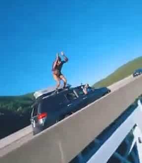 Une vidéo saisissante par le talent de ce pilote de drone qui nous offre une image folle de ce base jumper. Assis sur le toit d’un véhicule, ce base jumper va attendre d’être au dessus du pont pour se jeter dans le vide. Le tout filmé par la caméra du drone pour une vidéo spetaculaire.