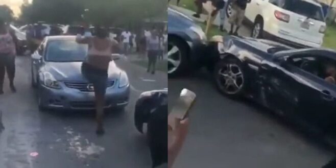 À ce qu’il paraît, il y avait eu un accident entre les deux voitures comme montré dans la vidéo. La femme de la voiture noire décide d’affronter le conducteur de l’autre voiture de sa façon, mais cela a très mal tourné pour elle.