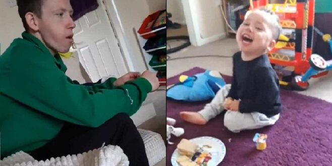 Cet adorable petit enfant a été filmé en vidéo en vidéo par sa maman se moquant de l’accent de son père.
