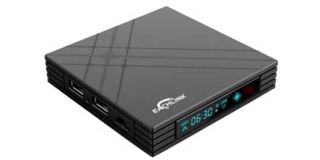 Cette box TV est compatible avec le système d’exploitation Android 7.1.2. La Eachlink H6 tourne avec un processeur Allwinner H6, quad core, Cortex A53 et une carte graphique GPU Mali T720. La box comporte une connexion Wifi d’une fréquence de 2,4 GHz et prend en charge le décodage H.265.