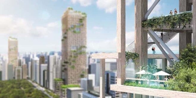 Le développeur japonais sumitomo forest et ses associés architectes concepteurs nikken sekkei annoncent leurs plans de construire la gratte-ciel en bois le plus haut du monde à Tokyo. Ce gratte-ciel phénoménal s’élèvera à 350 mètres (11,148 pieds) devrait être achevé en 2041.