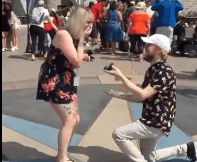 Ce couple a créé la surprise, chacun de leur côté. Lors d’une balade dans leur endroit préféré, à Disney, la jeune femme comme le jeune homme a prévu de faire une demande en mariage. Lorsque sa compagne a sorti son porte-bague pour se lancer, le jeune à la fois étonné, heureux, mais aussi un peu embarrassé a sorti également le sien. Les deux ont ainsi voulu faire la demande, au même moment, là où surement est né leur amour. Découvrez la scène en vidéo.