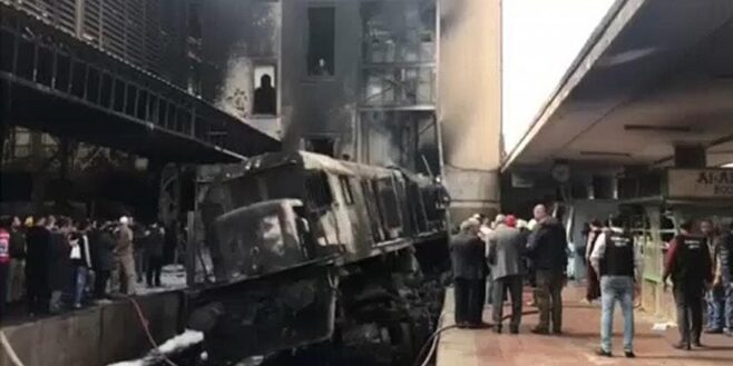 Au moins 25 personnes sont mortes et 50 blessées à la suite d’un énorme incendie d’un train, lancé d’une vive allure, qui s’encastrait dans un mur de la grande station de Caire.