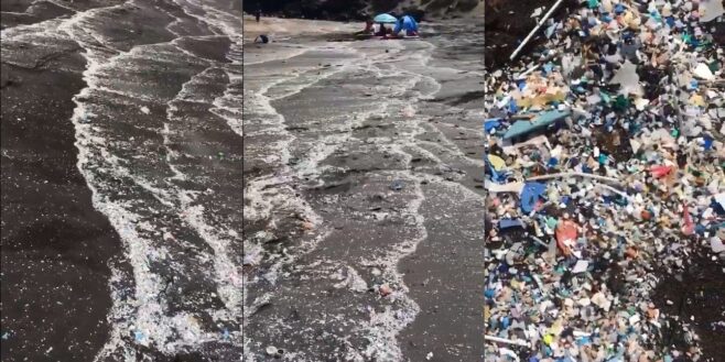 Cette vidéo a été prise à une plage de Tenerife, aux Canaries. De loin, cela donne impression que c’est de l’écume de mer mais c’est en fait des déchets de microplastiques qui se sont accumulés sur la plage.