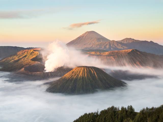 Le mont Bromo, le seul volcan actif de l’île de Java. Il est connu pour avoir une vue incomparable durant le lever du soleil.
