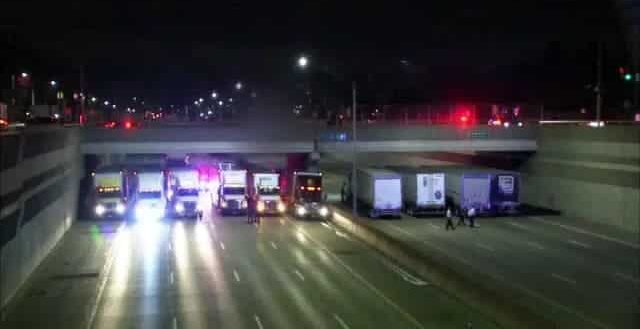 La police de l’État du Michigan a organisé 13 semi-remorques pour aider un homme qui menaçait de se suicider sur un viaduc routier.