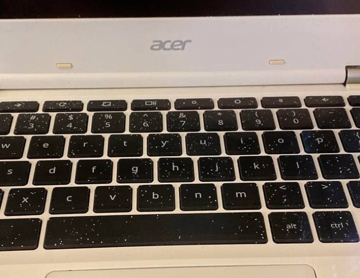 Le design de ce clavier d’ordinateur avec des éclaboussures de peinture blanche donne l’impression qu’il est couvert de poussière et de pellicules.