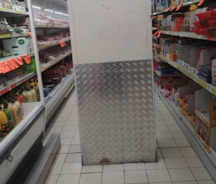 Un pilier placé au milieu de l’allée, difficile de faire ses courses avec son panier dans ces conditions