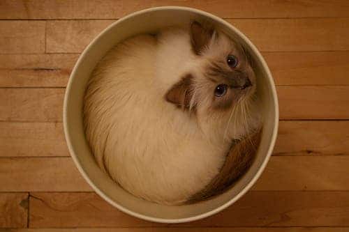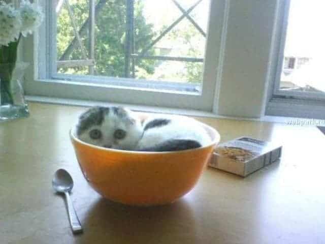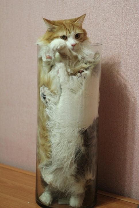 Comme l’eau, le chat est capable de prendre la forme de l’endroit dans lequel il se faufile, même le plus confiné. Cela laisse à penser que ce gentil félin pourrait être liquide.