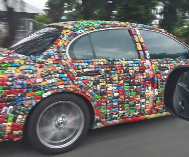 Cette voiture est recouverte de petites voitures