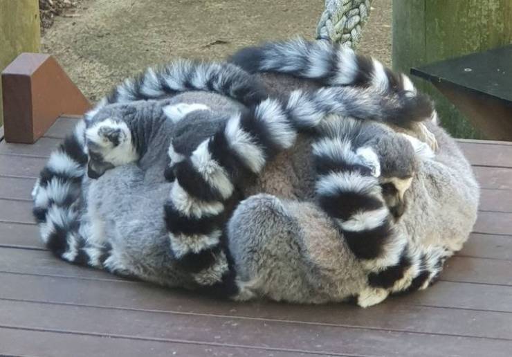 Des lémuriens qui se tiennent au chaud.