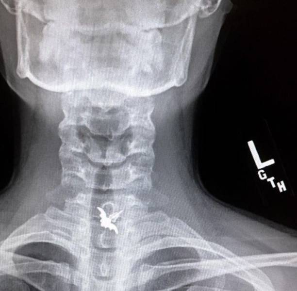 Cette boucle d’oreille en chauve-souris a trouvé son chemin dans un inhalateur. 14 heures aux urgences et une opération plus tard, cette femme a été surnommé par la suite Batgirl.