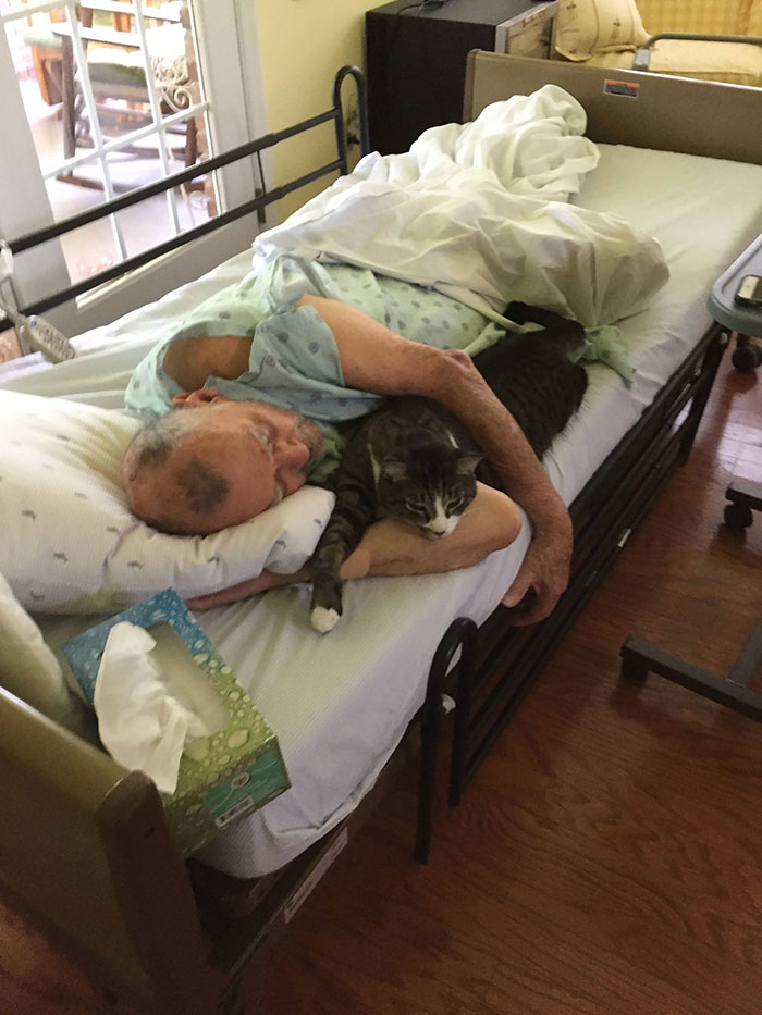 # 20 Mon père en soins palliatifs à domicile la semaine dernière avec son chat Brady. Il a perdu son combat jeudi après-midi.