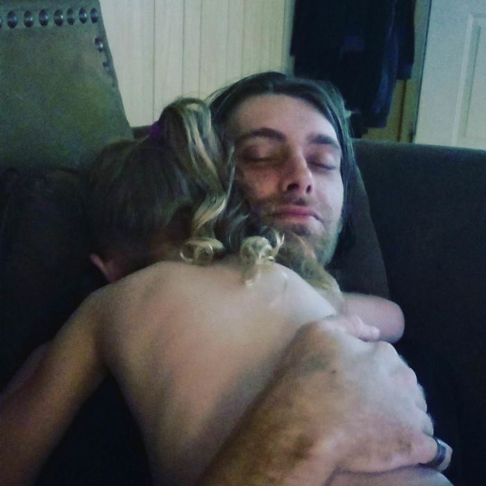 # 23 Dernière photo de mon mari étreignant notre fille la plus âgée.