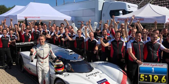 Au volant de cette prototype LMP1, Timo Bernhard a battu le record de Stefan Bellof qui était de 6’11 avec un chrono de 5’19″546, soit une vitesse moyenne de 234,693 km/h. A savoir que le pilote avait aussi réalisé avant des temps de 5’31″899 et de 5’24″375.