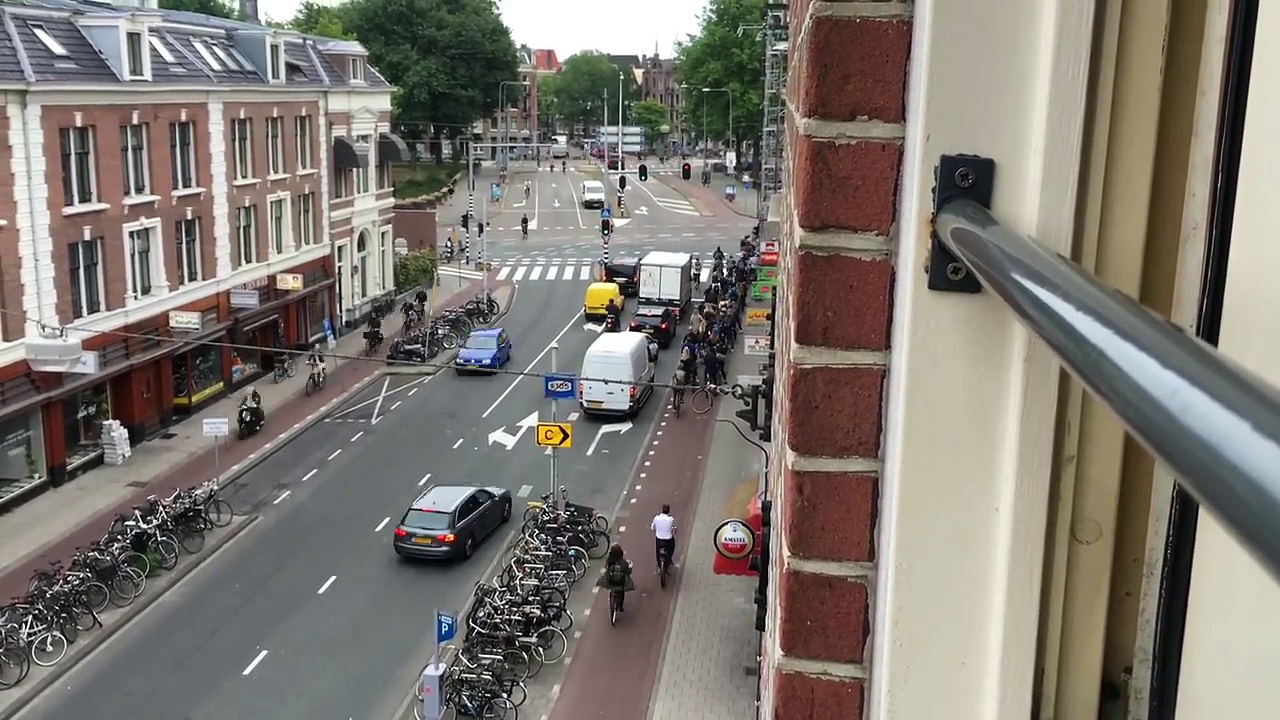 Le rush hour du matin à Amsterdam montre à quel point le nombre de cyclistes est important. On peut le voir avec ces images, d’une multitude de vélo qui doivent attendre de passer.