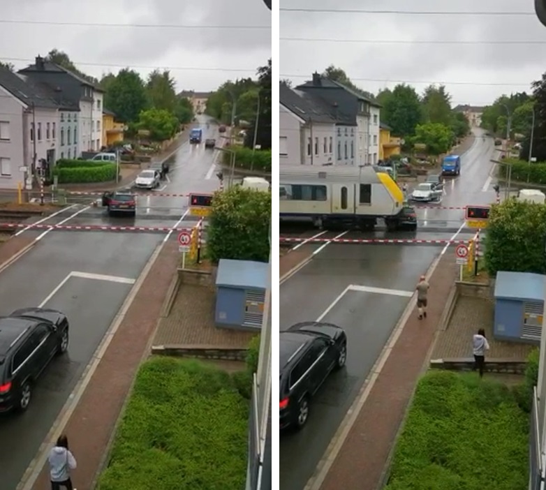 Alors que les barrières d’un passage à niveau à Bertrange en Luxembourg se sont abaissées automatiquement pour laisser passer un train, un automobiliste est coincé entre les deux. La personne au volant n’a pas voulu enfoncer la seconde barrière. Pour essayer de se libérer de ce piège, celui-ci n’a eu le choix que d’abandonner son véhicule sur la voie ferroviaire.
