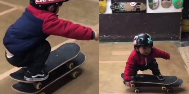 Un adorable petit garçon, dont l’âge ne dépasse pas les 5 ans, nous montre son talent impressionnant en faisant la planche à roulettes !