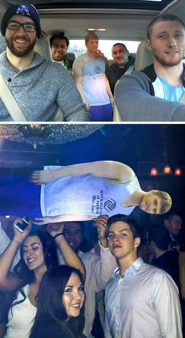 La véritable amitié, c’est embarquer une pancarte à l’image d’un pote en soirée même quand il ne peut pas. Comme quoi, absence physique mais présence morale.