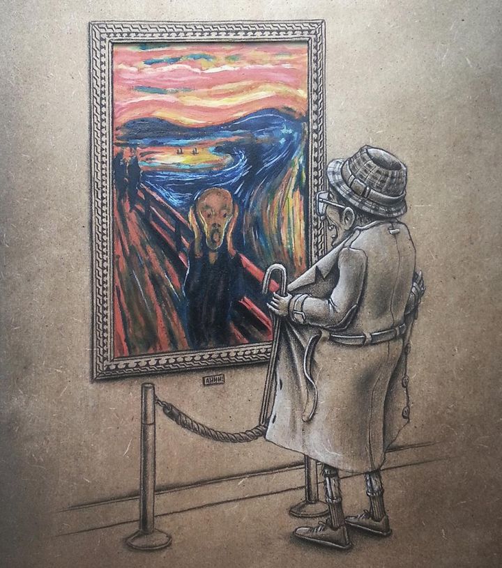 Cet illustrateur trouve ses inspirations des artistes contemporains au style varié comme Dran, Ron ou Mueck. Mais il est aussi influencé par les maîtres du surréalisme tels que Klimt, Dali ou Magritte.Ces aspirations et ses inspirations l’ont donc permis de s’attaquer à six œuvres d’art pour les réinventér d’une façon un peu plus sombre.