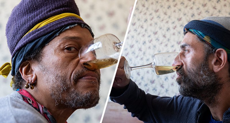 Ce n’est pas seulement le pipi que Sam prend par le nez, car il boit (ou prend un verre) de l’eau, du vin, des jus de fruits et de légumes.