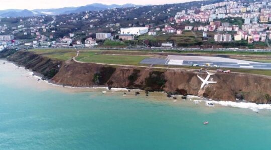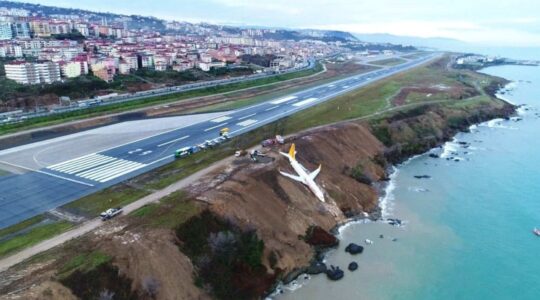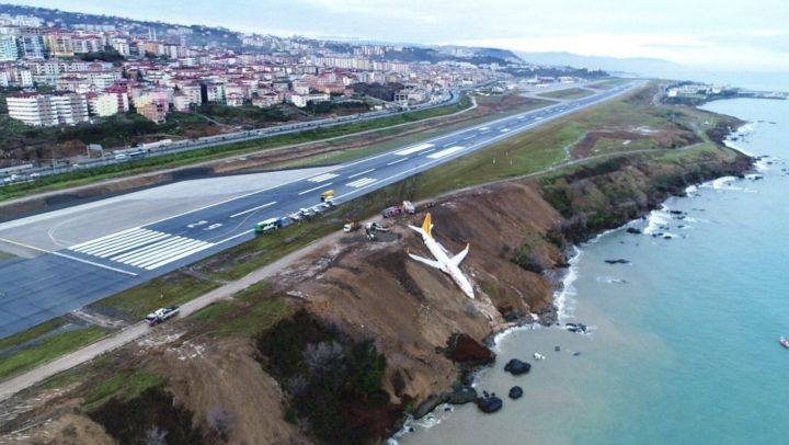 L’avion de Pegasus Airlines a dérapé hors de la piste à l’aéroport de Trabzon en ratant son virage et finissant sa course dans la falaise près de la mer.