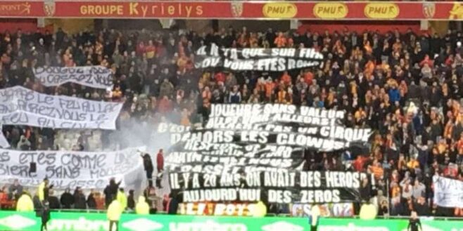 On n’aura jamais vu autant de banderoles dans un match de foot. Le club de Lens va mal dans cette ligue 2, 15e à seulement 3 points de la relégation, et les supporters ont montré leur mécontentement avec des banderoles, toutes originales et drôles.