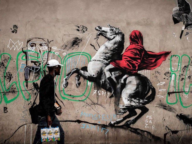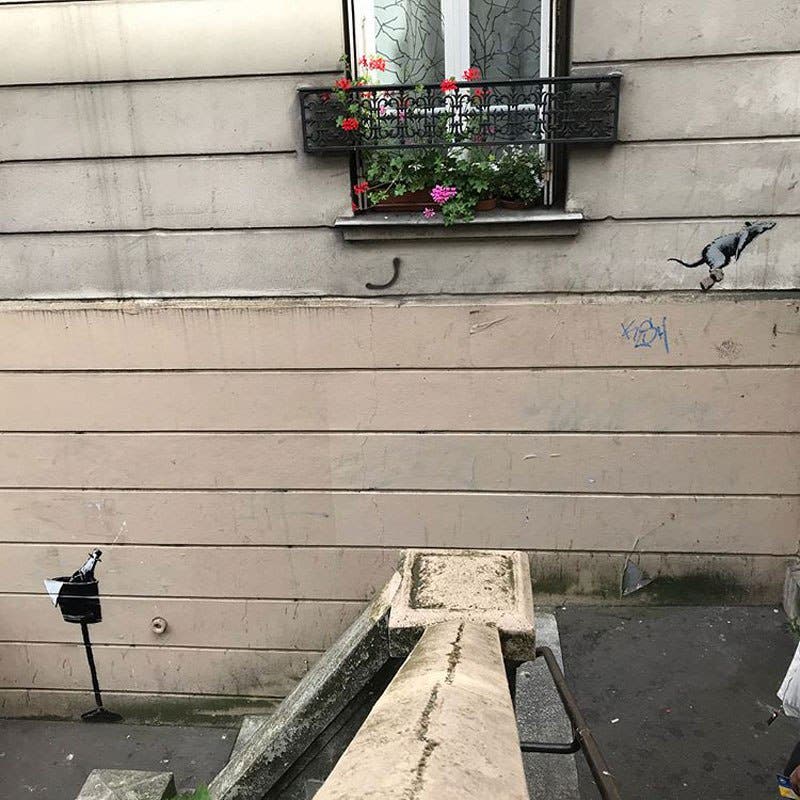 Pour se rapporter à la toile de Jacques-Louis David, qui représente Bonaparte en train de franchir le Grand-Saint-Bernard, Banksy a décidé également de peindre Napoléon Bonaparte montant sur un cheval avec une cape rouge. C’est la découverte à faire dans le 19e arrondissement, à la rue de Flandre. Ce ne serait pas les seules œuvres de l’artiste à Paris !
