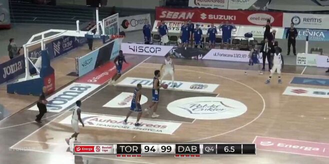 Sacha Killeya-Jones du MKS Dabrowa Gornicza n’aurait peut être pas du jouer la dernière possession de ce match de basket. La victoire ou la défaite étant atteinte, ce basketteur s’en va pour dunker seul dans la raquette.