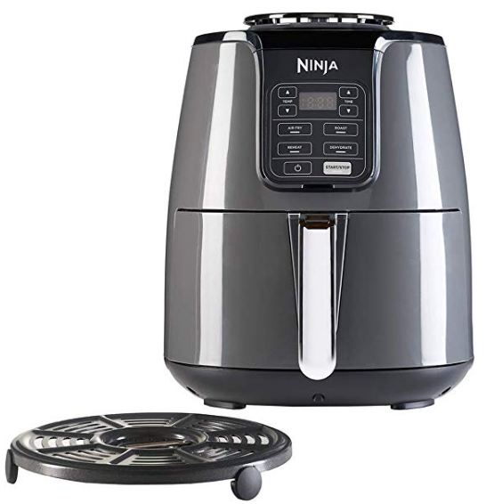 Cette friteuse aide à frire sans matière grasse. La friteuse Ninja Air Fryer modèle AF100EU possède 4 fonctions de cuisson : friteuse à air, réchauffage et déshydratation, rôtisseuse. Les plats cuisinés sont moins caloriques que dans la cuisson habituelle. Cette friteuse comprend un panier antiadhésif d’une capacité de 3,8 litres. Son pavé numérique sert de commande.