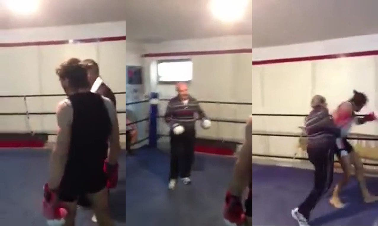 Cette vidéo montre une scène qui s’est passée entre deux hommes ; un jeune et un vieux dans une salle de sport.