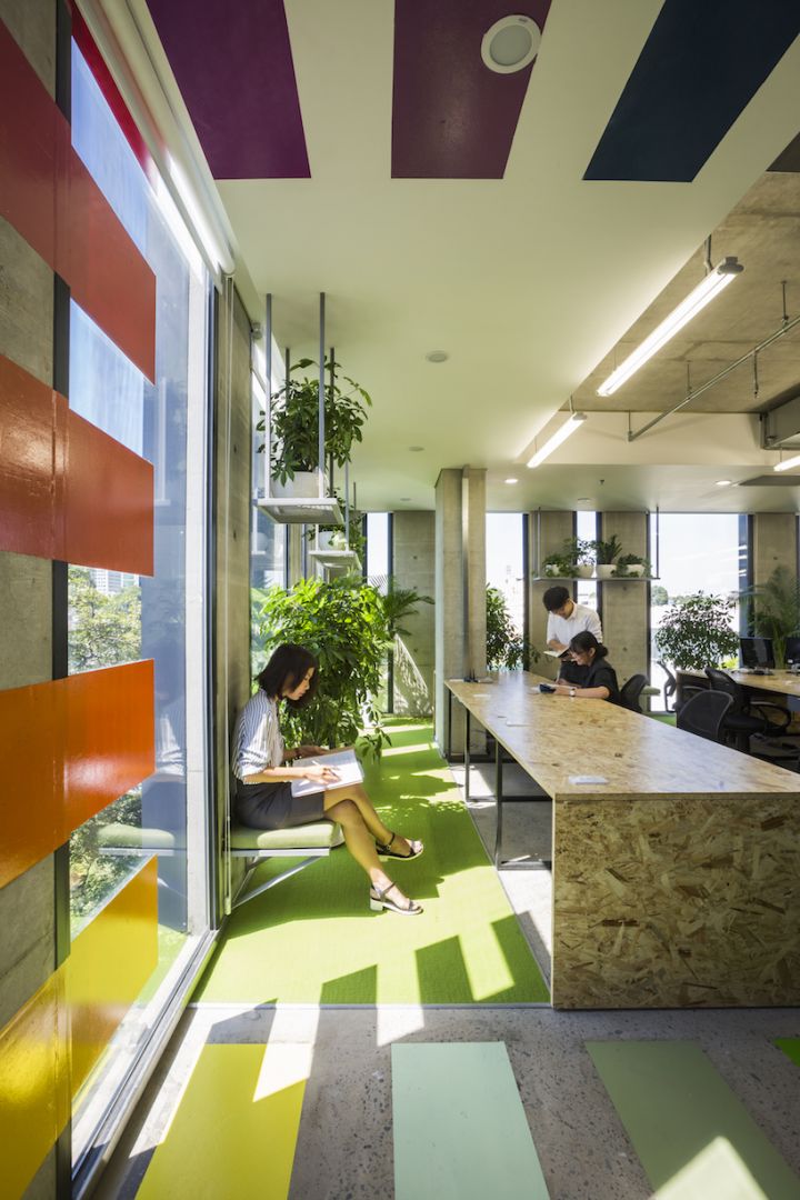 Une entreprise de tourisme situé à Ho Chi Minh ville a suivi le pas de la tendance verte. Les locaux des bureaux de cette société vietnamienne ont été conçus grâce à la collaboration du studio japonais happ et 07 beach. Les nouveaux locaux offrent un espace vert, semblable à un parc et favorisent le bien-être.