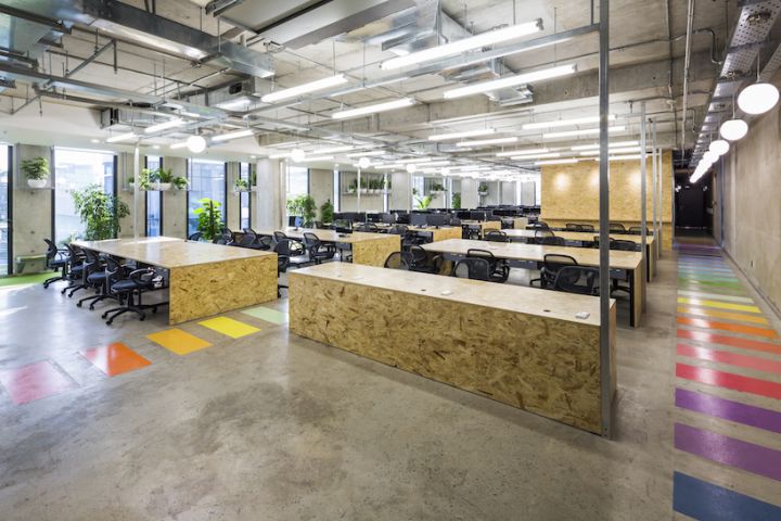 Le design collaboratif du 07 beach et du studio japonnais happ consistait à concevoir l’intérieur de nouveaux bureaux. Cela pour une entreprise de 500 employés qui se développe rapidement et afin de favoriser son activité.