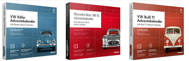 Sinon, si vous êtes toujours fan de Porsche, il existe ces superbes calendriers de l’Avent pour monter votre véhicule. Chaque jour une nouvelle pièce pour construire le bolide. Dispo ici aux alentours de 65 euros.