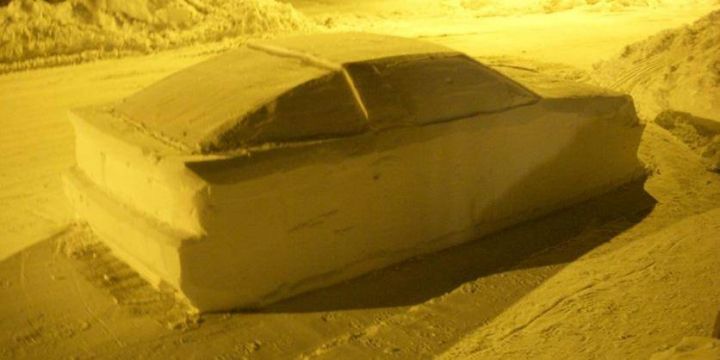 Simon Laprise a fait le buzz sur Facebook en partageant la photo de sa plus belle création. Du jamais vu ! Une voiture de neige faite en taille réelle a stationné sur un parking non autorisé et a été repéré par les caméras de la ville.