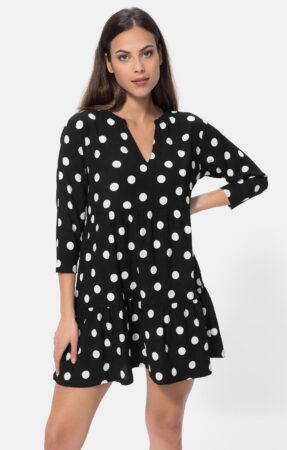 C’est une robe à pois déclinée en deux coloris différents, noir et blanc. Une chose est sûre, il s’agit de véritable indispensable de la garde-robe. C’est une robe courte qui prône le confort extrême et l’élégance.